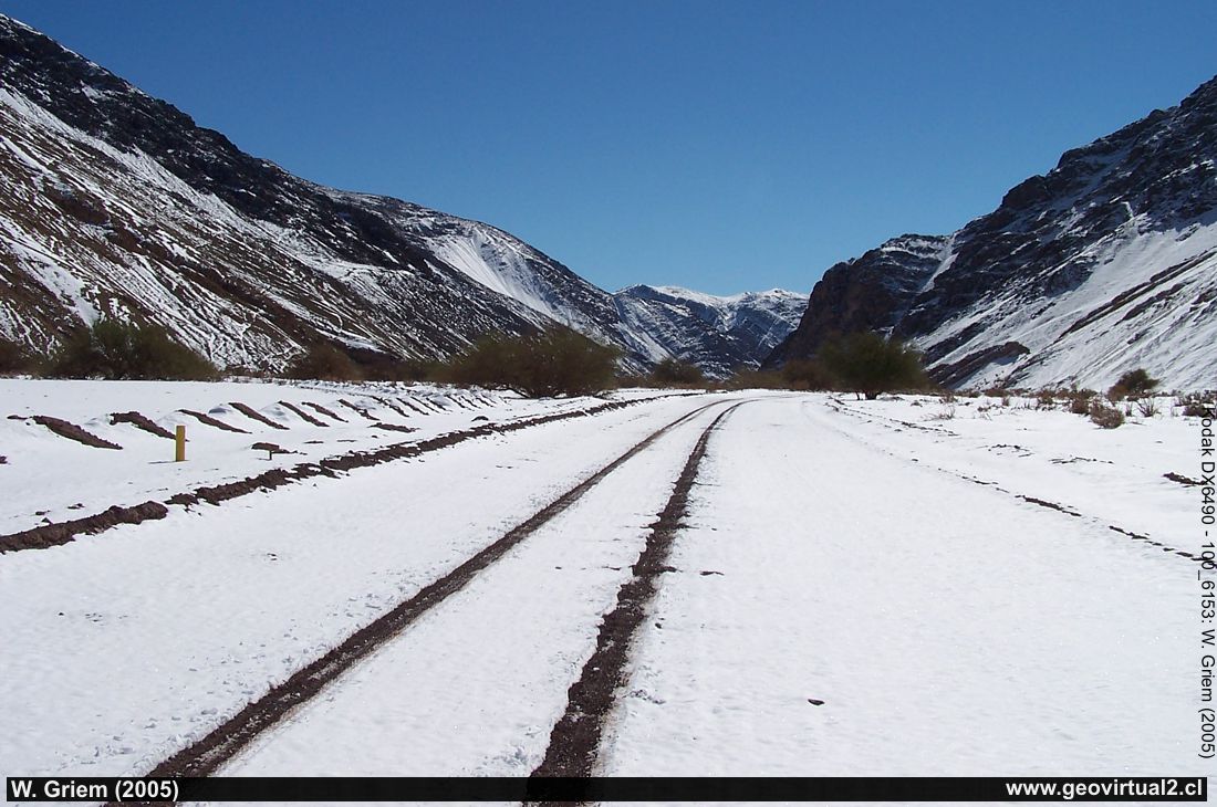 Photo: Paipote Gorge (Region of Atacama, Chile) with snow in July 2005. Sector El Escorial in 2000 meters high. (Photo: W. Griem; Kodak6153) Large Photo