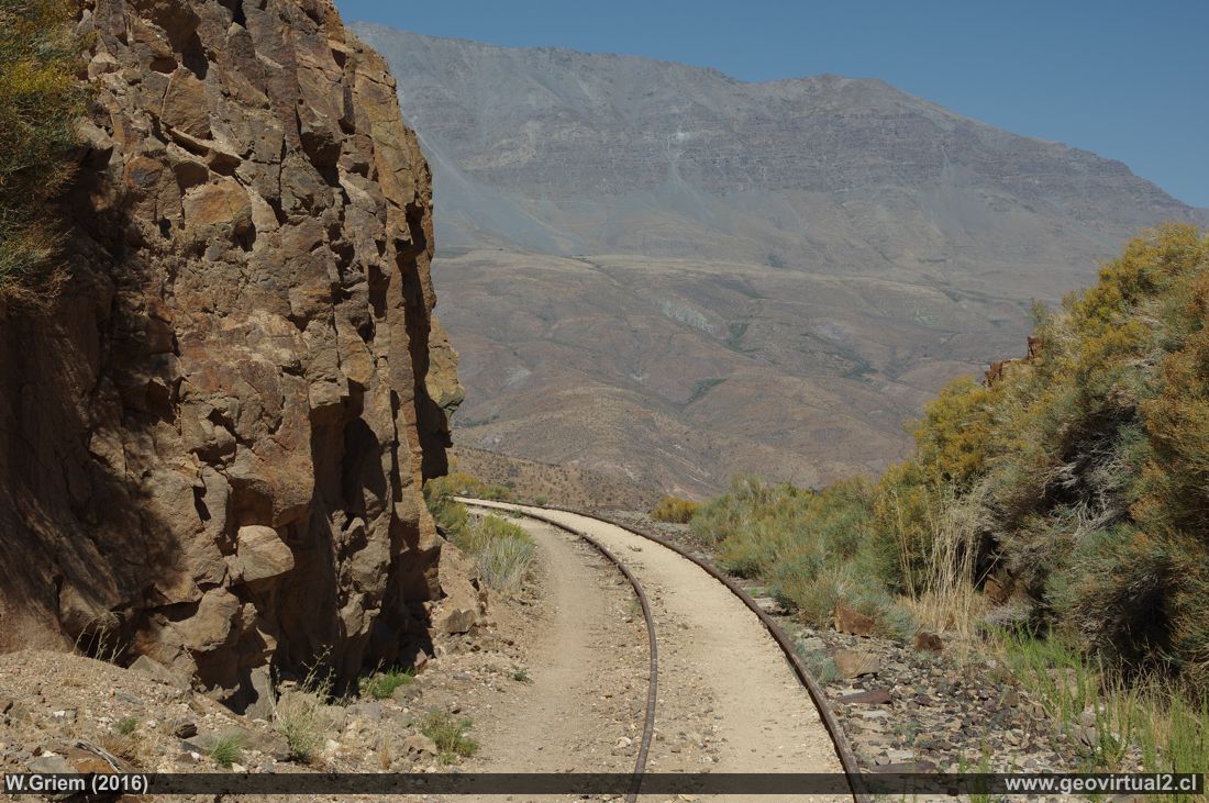 Foto: Línea férrea longitudinal subida sur al Espino, cerca del túnel Curvo, Región de Coquimbo, Chile: (W. Griem, 2016 - Pentax-938 ) - en grande