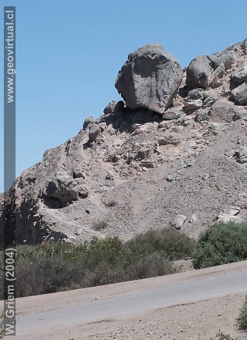 Piedra Colgada se ubica 20 km al norte de Copiapó.