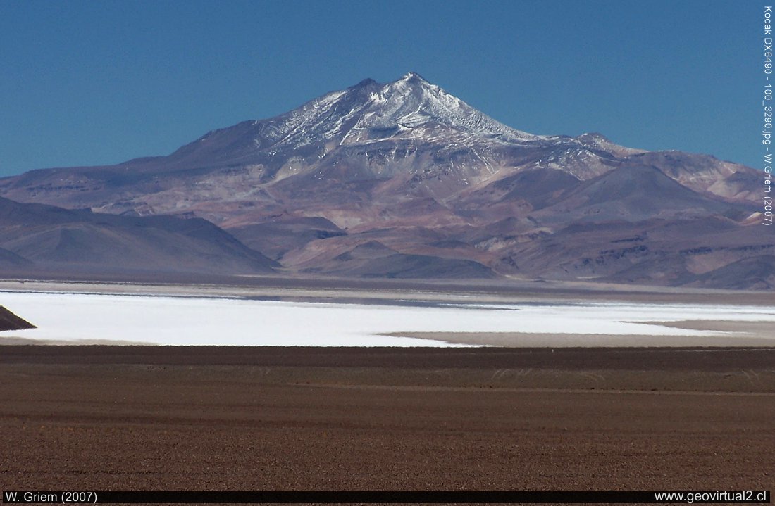 Photo: Salar de Maricunga, seen from the north to the south. In the background, Copiapó Volcano, Atacama Region - Chile. Foto W. Griem (2007; Kodak13290) - Large Photo