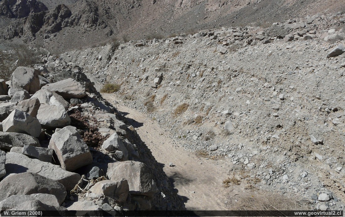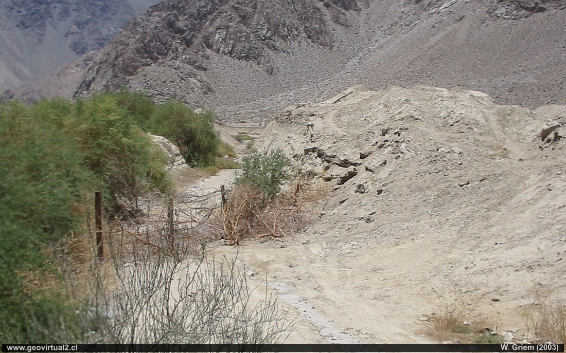 Foto: Corte del trayecto histórico a Los Loros, Región Atacama; Chile. W. Griem (2003; CaPS2054) Foto grande