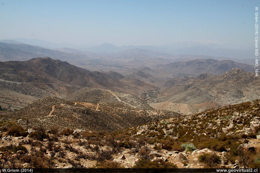 Foto: Vista panorámica hacia al norte del portezuelo Espino, Región de Coquimbo, Chile. (Foto W. Griem; 2014; Canon 50D -1644) - Foto grande